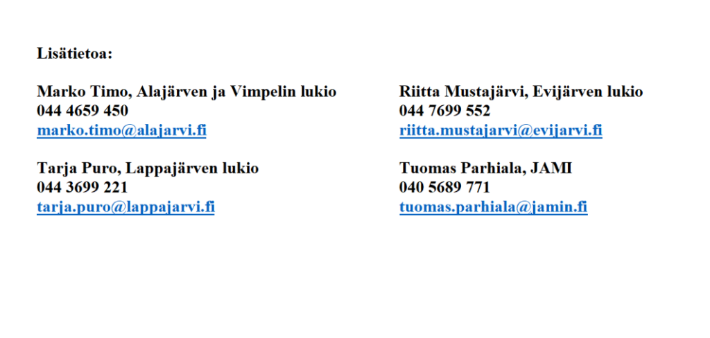 Alajärven, Evijärven, Lappajärven ja Vimpelin lukiot ja Järviseudun ammatti-instituutti sekä alueen urheiluseurat aloittivat yhteistyössä Järviseudun urheilulinjan toteuttamisen tänä syksynä. Linja on lähtenyt vauhdikkaasti käyntiin. Opiskelijoita on yhteensä noin 60 eri linjoilla.